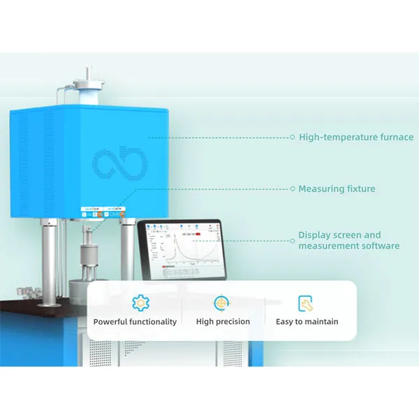 The instrument combines a high-temperature furnace, precision measurement fixture, advanced control software, and an integrated display system into a compact platform. Based on the parallel-plate capacitor measurement principle, the system enables accurate characterization of dielectric constant, dielectric loss, and impedance spectroscopy over a wide temperature and frequency range.